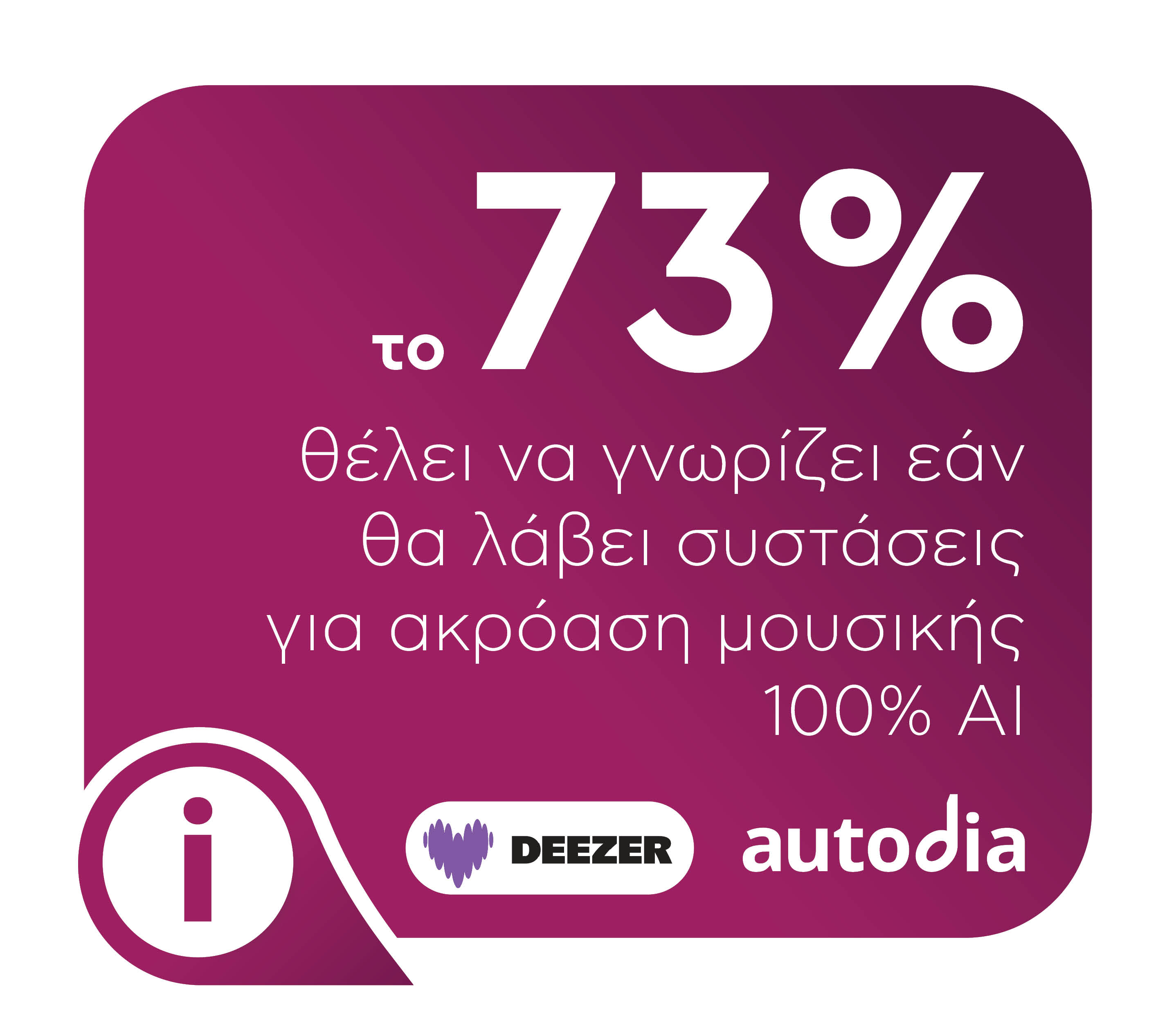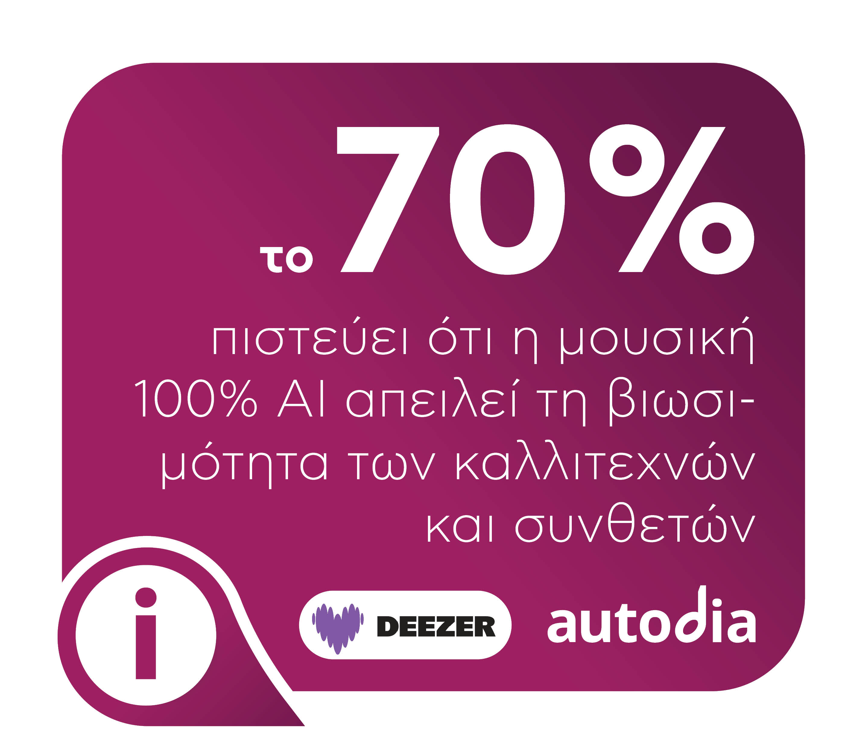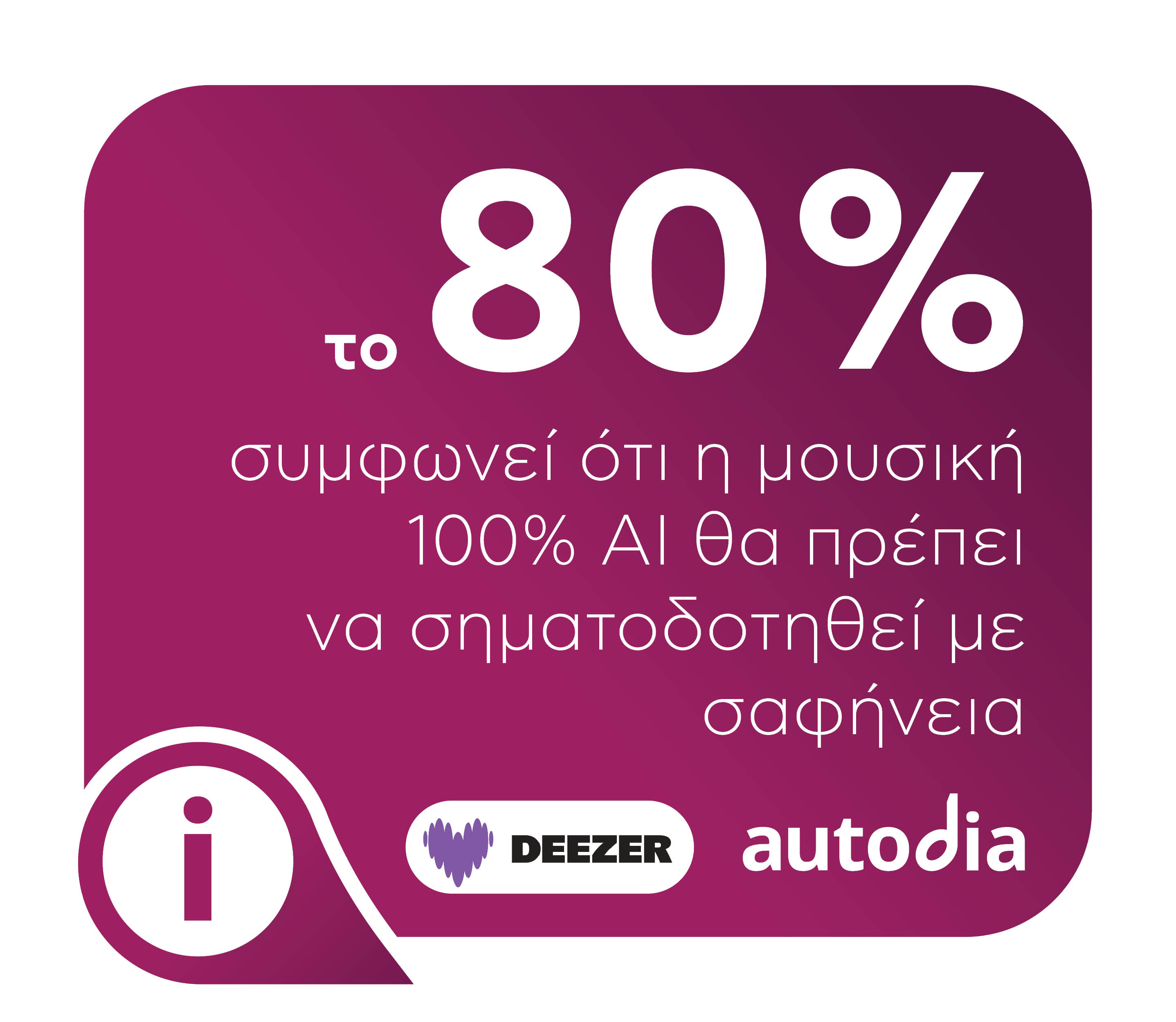 Παρίσι, 12 Νοεμβρίου 2025 – Η Deezer, η παγκόσμια πλατφόρμα μουσικής εμπειρίας, ανέθεσε την πρώτη παγκοσμίως έρευνα που εστιάζει στις αντιλήψεις και τις στάσεις απέναντι στη μουσική που έχει δημιουργηθεί από τεχνητή νοημοσύνη. Η έρευνα διεξήχθη από την Ipsos σε συνολικά 9000 άτομα σε 8 χώρες – ΗΠΑ, Καναδά, Βραζιλία, Ηνωμένο Βασίλειο, Γαλλία, Ολλανδία, Γερμανία και Ιαπωνία. Αποκάλυψε μια σαφή επιθυμία για τη σήμανση της μουσικής που παράγεται 100% από τεχνητή νοημοσύνη και τη διασφάλιση της δίκαιης μεταχείρισης και αμοιβής των καλλιτεχνών και των τραγουδοποιών, εάν η μουσική τους χρησιμοποιείται για την εκπαίδευση μοντέλων τεχνητής νοημοσύνης.