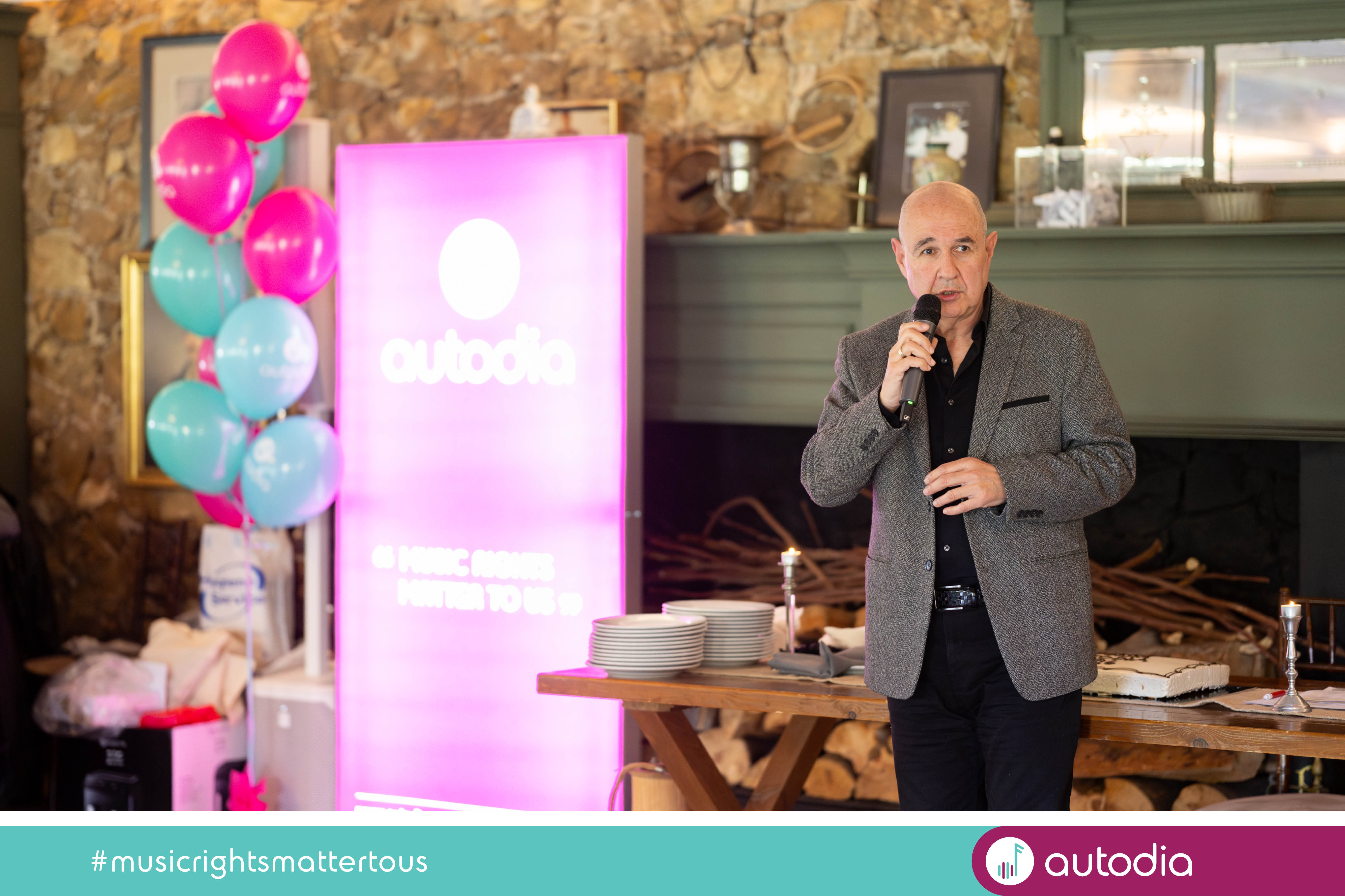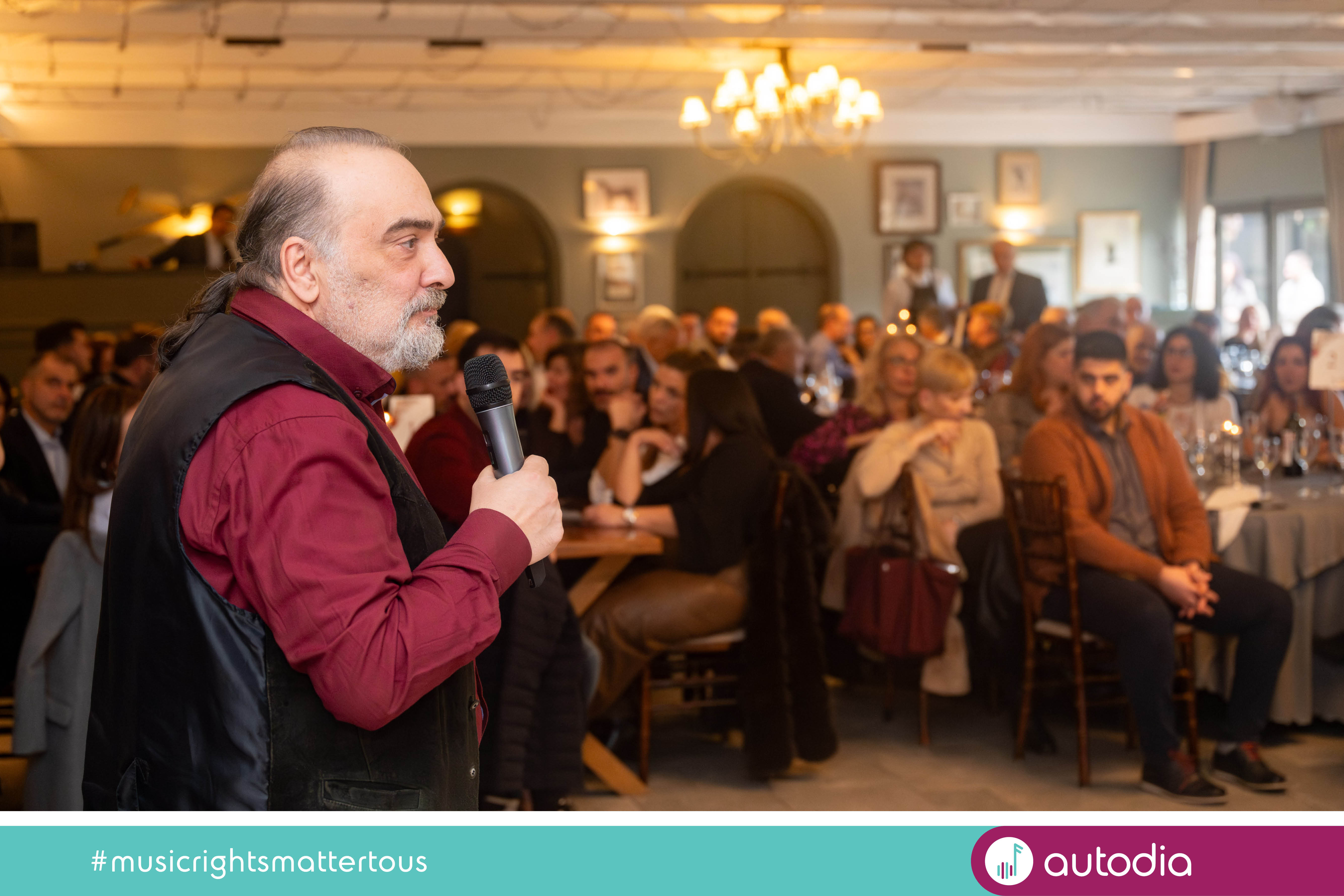 Κατά τον χαιρετισμό του, ο Πρόεδρος Δ.Σ. Γιάννης Γλέζος προέβη σε μία ιστορική αναδρομή, όσον αφορά την περιπετειώδη πορεία της AUTODIA προς την κορυφή, καταλήγοντας στο ότι ο Οργανισμός μας έχει εδραιωθεί ως ο πλέον αξιόπιστος και βιώσιμος ελληνικός ΟΣΔ στο μουσικό πνευματικό δικαίωμα.